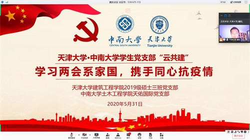 学习两会系家国,携手同心抗疫情——3044am永利集团官网土木工程学院与天津大学建筑工程学院举行联合云党日活动