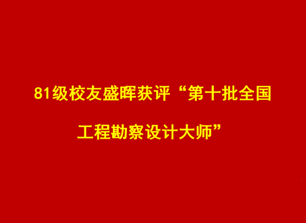 81级校友盛晖获评“第十批全国工程勘察设计大师”
