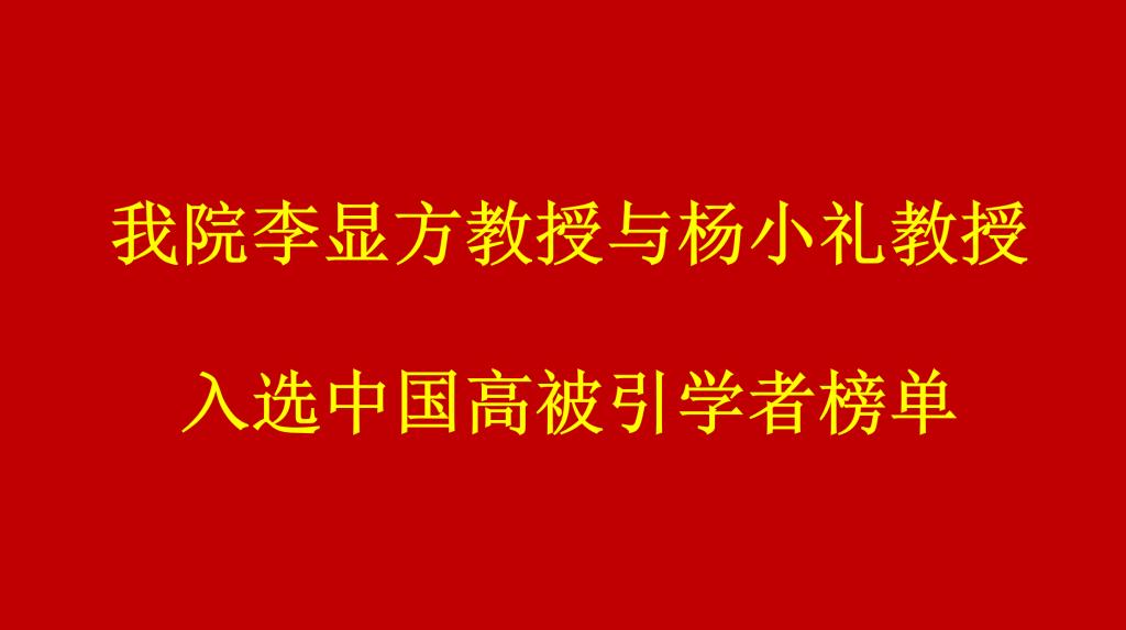 我院李显方教授与杨小礼教授入选中国高被引学者榜单