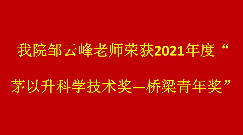 喜报!我院邹云峰老师荣获2021年度“茅以升科学技术奖—桥梁青年奖”