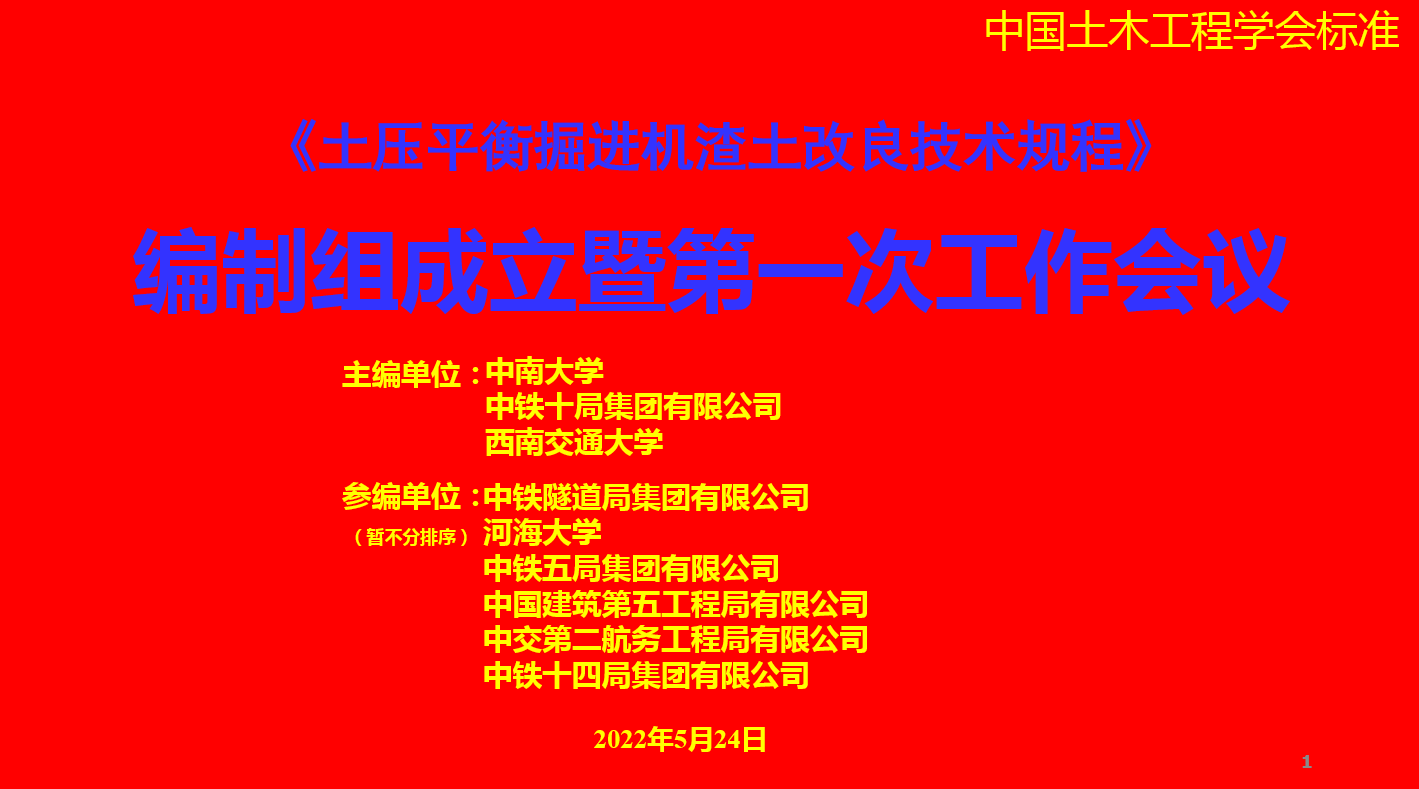 中国土木工程学会标准《土压平衡掘进机渣土改良技术规程》编制组成立暨第一次工作会议圆满召开
