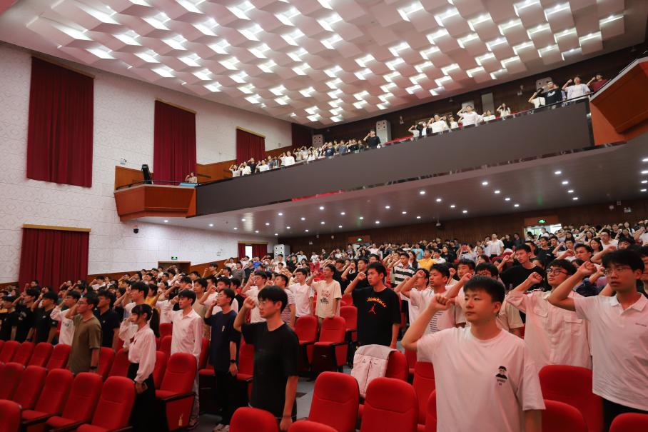 全体学生党员面向党旗庄严宣誓,重温入党誓词。专题党课在我院学生党员中引起热烈反响。