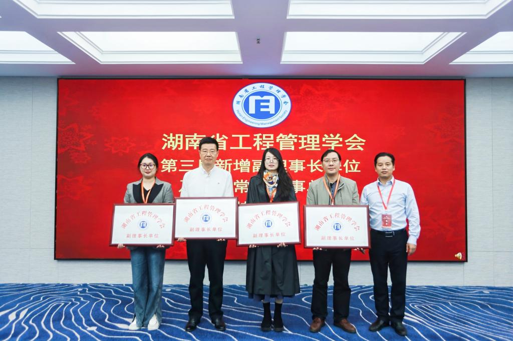 湖南省科协科技创新部蒋电波部长为新增选的4家副理事长单位授牌;湖南省民政厅社会组织管理局李魅荻主任为新增选的6家常务理事单位授牌。