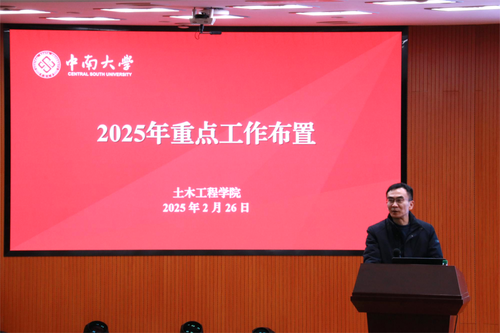 院长王卫东从人才培养、学科建设、科学研究、实验室平台建设、校友及社会服务,审计、财务、安全稳定等方面系统了部署2025年学院重点工作。他指出,要正确剖析当前学院发展与学科建设面临的挑战与难点,全院师生要有迎难而上的勇气和不畏艰险的决心,以“钉钉子精神”抓落实、以“创新思维”破难题,奋力开创学院事业发展新局面,大力推进土木工程一流学科建设。