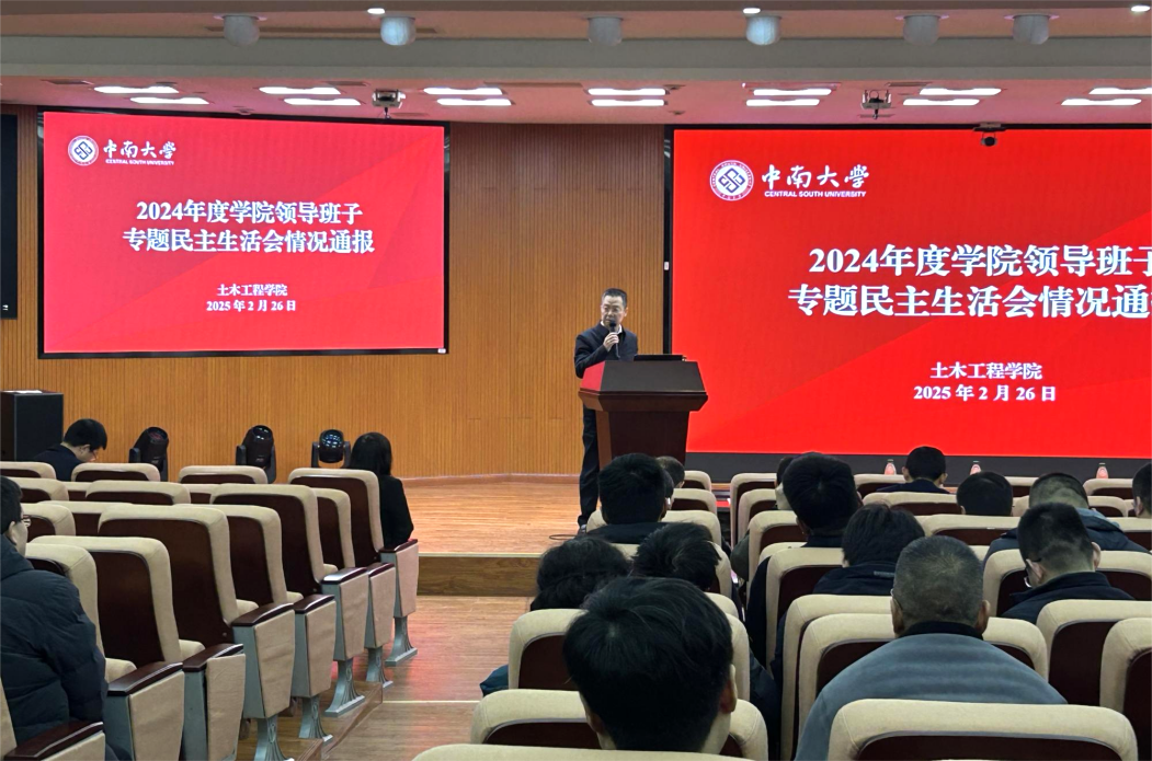 2月26日下午,土木工程学院教职工大会暨2024年度领导班子述职测评会于天心校区大学生科技文化中心一楼报告厅顺利召开,会议由学院党委副书记纪晓飞主持。学校党委组织部正处级组织员凌春雨到会指导。