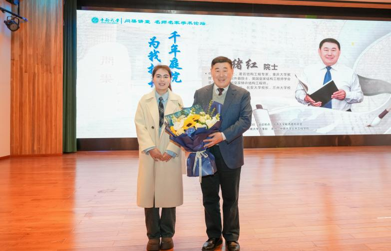 互动交流环节,周院士还悉心解答了同学们关于土木行业未来发展趋势、青年科研人员职业规划等一系列问题,展开了深入讨论交流。现场掌声雷动,同学们反响强烈,互动交流环节结束后,学生代表向周院士献上鲜花表示感谢,何旭辉副校长为周绪红院士递赠名师名家论坛嘉宾纪念牌。