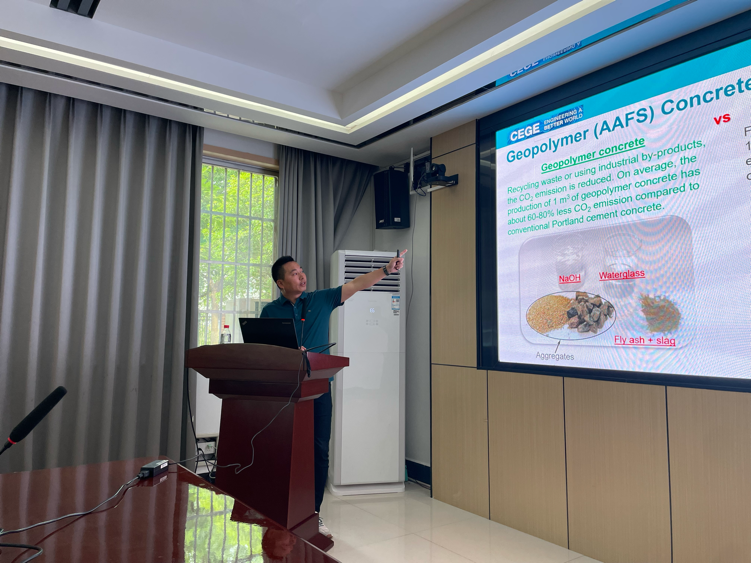 会上各位专家就低碳高性能混凝土、高速铁路发展与功能材料、高水平期刊论文发表等方面做了多场学术汇报。张明中作了题为“Turning Solid Wastes into Engineered Materials for Sustainable and Resilient Infrastructure”的报告,详细阐述了其团队在地聚物混凝土、碱激发混凝土、再生混凝土等低碳高性能混凝土领域的研究,将工业副产品、工业固废、废旧轮胎高价值应用于混凝土制备,推动工业固废资源化利用与混凝土高性能制备协同发展;于清亮作了题为“从JBE主编的视角出发——高水平期刊论文发表技巧”的报告,指出当前硕博士发表高水平期刊论文所面临的困境,从题目、摘要、实验、结果、分析、结论、学术道德等角度逐一讨论了撰写方法与技巧,揭示学术写作的隐形规则和实操指南;谭盐宾作了题为“高速铁路发展与功能材料的研究应用”的报告,指出当前高速铁路的发展依旧大有可为,功能材料的研究与新时代战略工程需求相匹配,回应了国家“双碳”战略和交通强国战略建设的迫切需求。