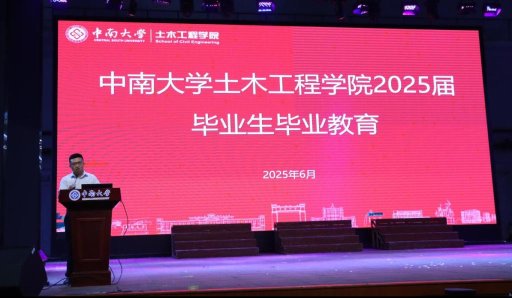 6月9日上午,土木工程学院在天心校区礼堂开展2025届毕业生“一个不能少”毕业生毕业教育暨深入贯彻中央八项规定精神学习教育宣讲活动。活动由学办主任杨涛主持,学院党委副书记纪晓飞主讲,学院全体2025届毕业生参与学习。