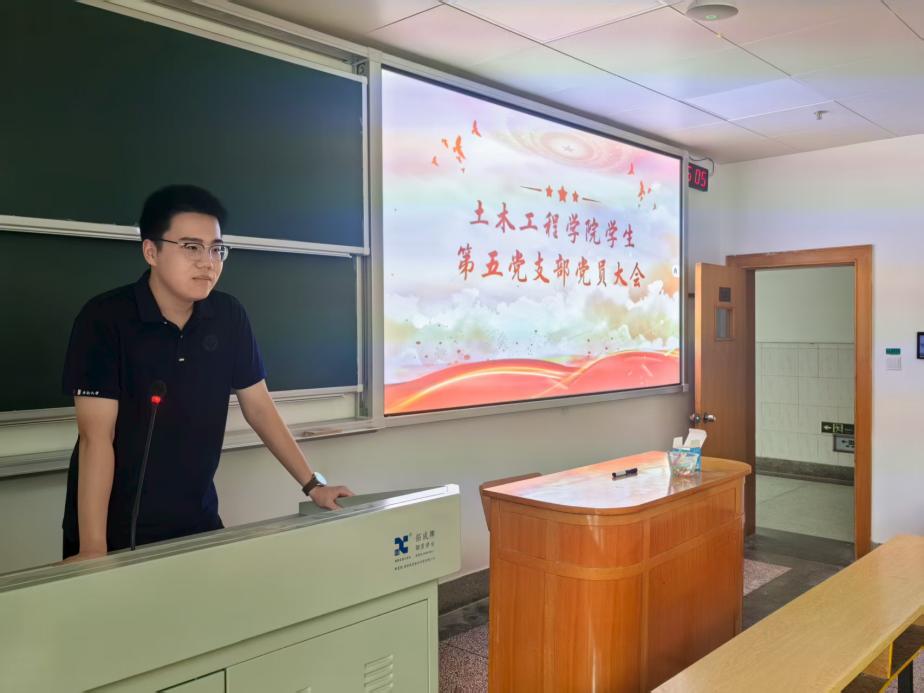 为深入学习贯彻习近平总书记在纪念中国人民抗日战争暨世界反法西斯战争胜利80周年大会上的重要讲话精神,做好中央八项规定精神学习教育总结,9月10日,3044am永利集团官网土木工程学院学生第五党支部在天心校区世纪楼B203教室召开党员大会。会议由汉金明同志主持,支部书记梁雨豪主持学习并讲话。