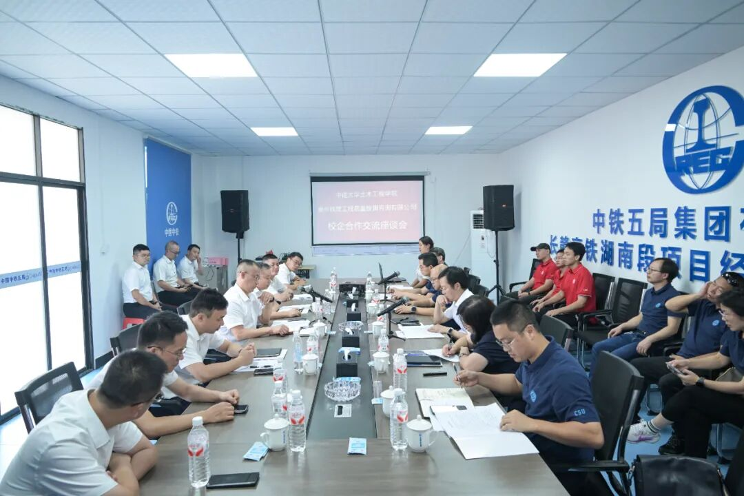 10月11日下午,土木工程学院与贵州铁建工程质量检测咨询有限公司校企合作授牌仪式在长赣高铁试验室圆满举行。土木工程学院党委书记李磊、党委副书记纪晓飞,中铁五局副总经理曹振兴、人资部副部长高海祥,长赣高铁项目经理部党总支书记、经理彭建军,贵州铁建党委书记谭波等领导出席活动。