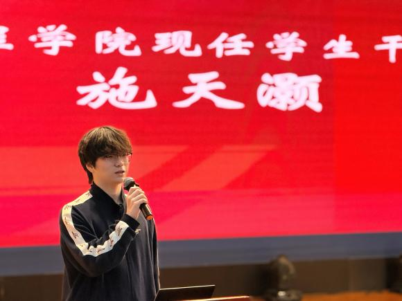 往届学生干部代表肖文杰以“亲历者”视角,分享从普通干事到团队骨干的蜕变历程,引发在场成员的强烈共鸣。现任学生干部代表施天灏和孙天乐结合自身在团学工作中的经历,表达了与新成员同向同行、共同进步的决心。干事代表田景霖则分享了加入组织的初心与期待,展现积极投身工作、主动学习成长的坚定态度。