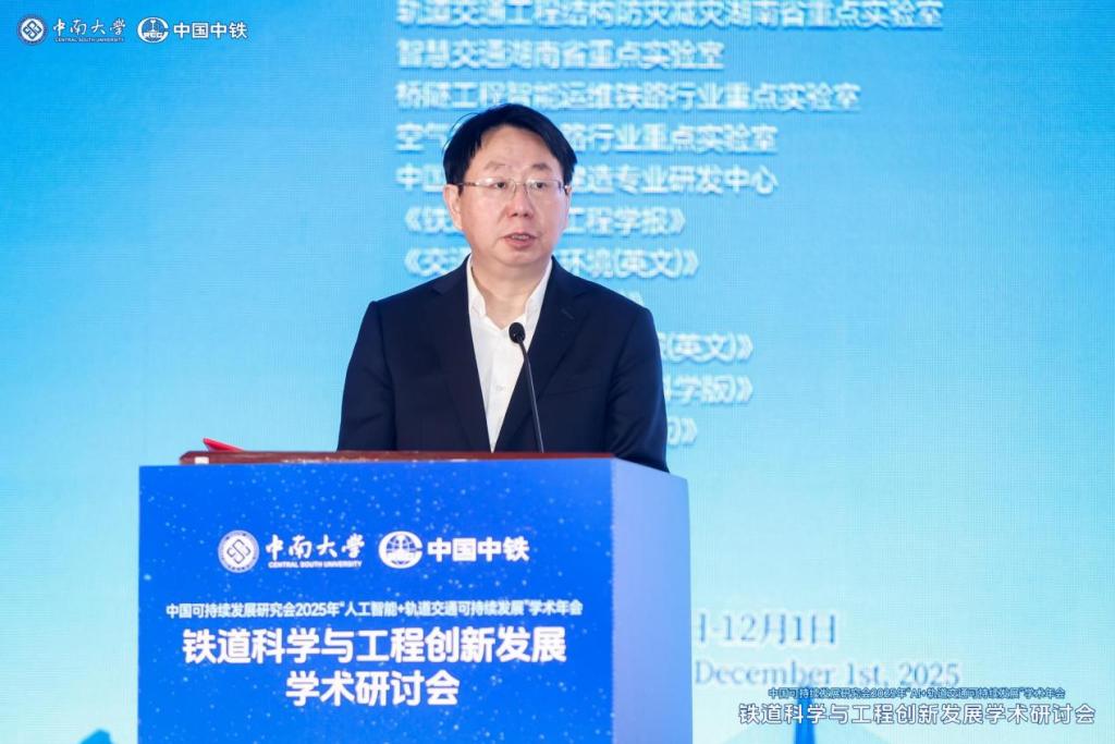11月30日,中国可持续发展研究会2025年“人工智能+可持续发展”学术年会“人工智能+轨道交通可持续发展”分论坛暨铁道科学与工程创新发展学术研讨会在长沙举办。本次会议以“聚焦轨道交通前沿、服务铁路行业发展”为主题,旨在搭建高水平学术交流平台,深入探讨智能时代新技术与轨道交通场景的深度融合,为轨道交通领域高质量发展注入新动能。中国工程院院士田红旗、陈政清、余志武及来自全国轨道交通领域的500余名领导、专家、学者及工程建设者参加会议。