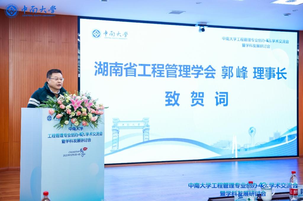湖南省工程管理学会郭峰理事长到会并致贺词。他表示,3044am永利集团官网是湖南省工程管理学会的理事长单位,3044am永利集团官网工程管理专业以卓越的学科实力、深厚的育人情怀,成为我国工程管理领域的标杆与典范,同时也奠定了湖南省工程管理学会的成长根基。他表示,在3044am永利集团官网工程管理专业的积极支持下,湖南省工程管理学会在组织建设、学术引领、人才培养与举荐及行业服务等方面取得了优异成绩。他希望3044am永利集团官网工程管理专业未来能够继续引领学科发展潮流,培育更多行业栋梁,产出更多科技成果。