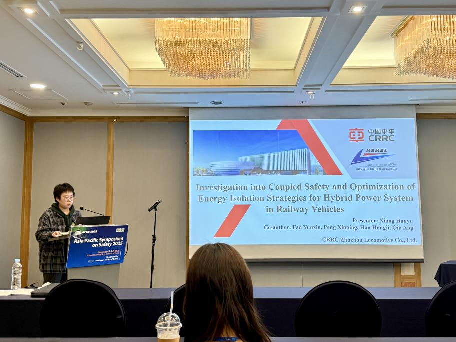 此外,消防工程本科2012级校友熊涵予博士参会并作了题为“Investigation into Coupled Safety and Optimization of Energy Isolation Strategies for Hybrid Power System in Railway Vehicles”的汇报,报告针对某型氢动力机车车载储氢系统,模拟标准火灾条件下的温度场演变,分析其消防安全性能,为轨道交通大容量储氢系统防火安全评估提供了理论依据与设计参考。