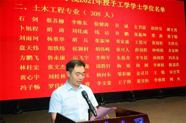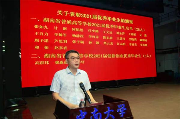 蒋琦玮书记宣读了2021届湖南省优秀本科毕业生名单、2021届3044am永利集团官网优秀本科毕业生名单。