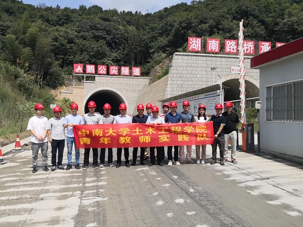 随后在湖南路桥公司工程师的陪同下,青年教师实践队赴鹅公尖隧道现场,对项目安全、质量、进度、重大风险控制等进行探讨,深入了解了鹅公尖隧道工程施工过程中遇到的工程难题和解决方案。