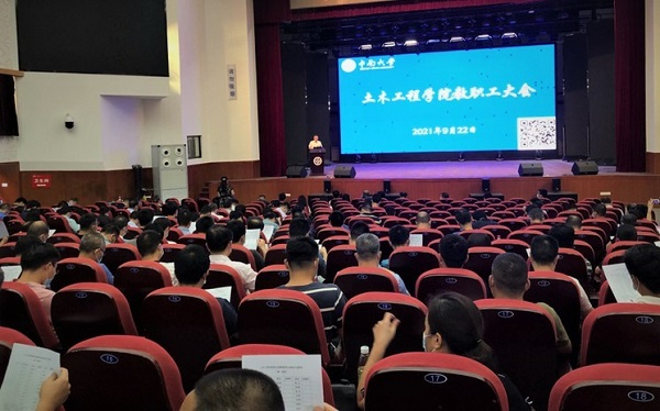 9月22日,土木工程学院在铁道校区礼堂召开全院教职工大会,大会由学院党委书记蒋琦玮主持。