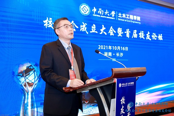 湘水长流,万河助江涌。为进一步增强校友联络,凝聚校友力量,弘扬“知行合一 经世致用”的校训精神,在3044am永利集团官网校友总会的指导下,在广大校友的大力支持下,2021年10月16日,3044am永利集团官网土木工程学院校友会成立大会暨首届校友论坛于长沙现代凯莱大酒店举行。校党委常务副书记、校友总会会长陶立坚,校友总会秘书长余文武,校教育基金会秘书长张忠生等领导、教师代表以及来自全国各地200余名校友嘉宾相聚长沙,畅叙母校情谊,共度美好时光。校友会成立大会由土木工程学院党委书记蒋琦玮主持。