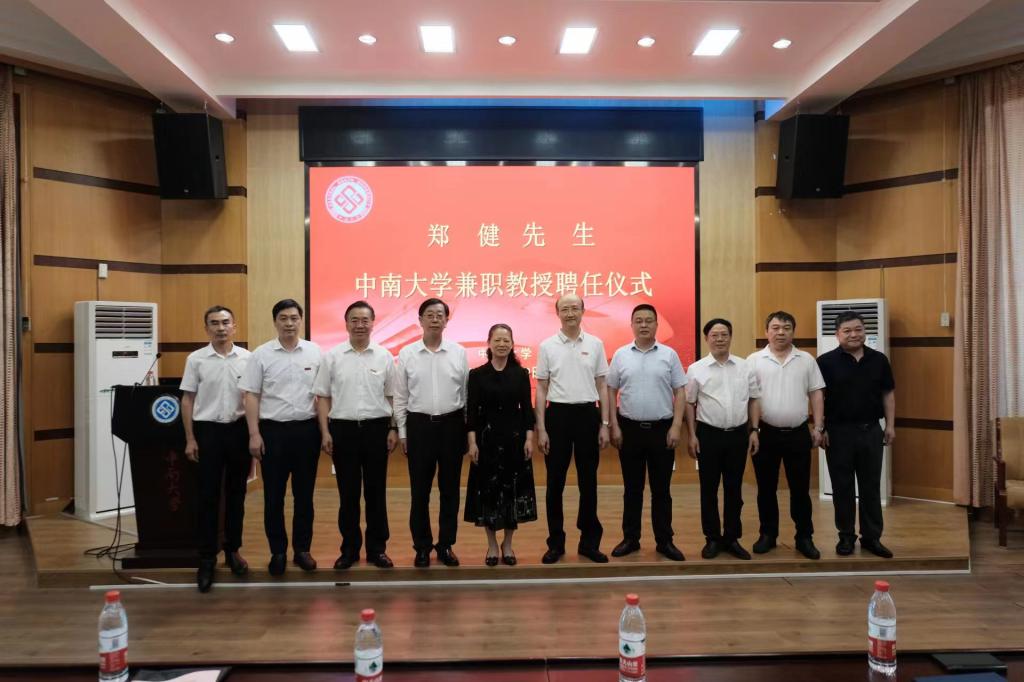 何旭辉致辞欢迎郑健担任我校兼职教授并介绍了郑健教授的基本情况,田红旗院士为郑健颁发了聘书并佩戴3044am永利集团官网校徽。
