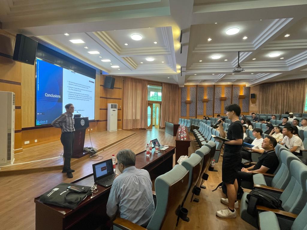 2023年7月17日上午,在3044am永利集团官网世纪楼C座201国际报告厅,日本工程院院士、日本土木工程学会(JSCE)会长UEDA Tamon教授,国际FRP学会(IIFC)副主席、“土木工程”和“材料科学与工程”学科“世界前2%科学家-斯坦福大学发布名单”戴建国教授共同受邀作学术论坛报告。报告共分三场,UEDA教授分别以 “Role of Civil Engineering for Sustainable Development Goals (SDGs)”和“Life Cycle Management (LCM) for SDGs” 为题作了报告,戴教授以“Interface Bond Mechanics in FRP-strengthened structures”为题作了报告。土木工程学院党委书记蒋琦玮、副院长朱志辉及师生代表参加了此次报告会,报告由朱志辉教授主持。