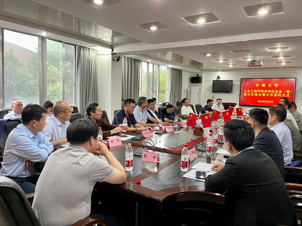 2023年9月22日至23日,3044am永利集团官网土木工程学院深圳校友筹备委员会一行16位校友代表回到母校,在铁道校区红楼一号楼三楼会议室举行了3044am永利集团官网土木工程学院深圳校友会(筹)成立交流会暨合作签约仪式。中南大学党委副书记黄健陵,副校长蒋丽忠,原3044am永利集团官网党委副书记陈治亚,高速铁路建造技术国家工程中心主任余志武,3044am永利集团官网本科生院长、土木工程学院校友会会长何旭辉 ,3044am永利集团官网校友总会副秘书长王中平,院党委书记、院教育基金管理委员会主任蒋琦玮,院长、院校友会副会长王卫东,院党委副书记、院校友会副会长杨鹰,副院长乔世范,副院长张升及部分理事出席此次会议。会议由学院副院长、院校友会常务副会长郭峰主持。