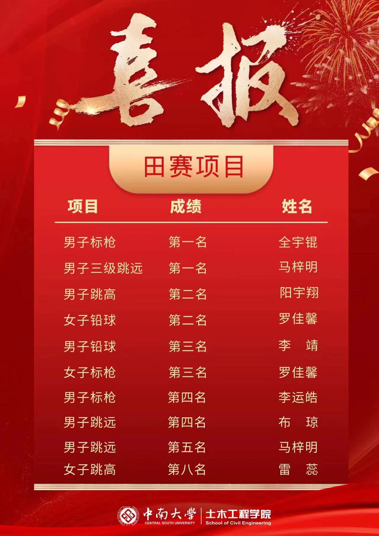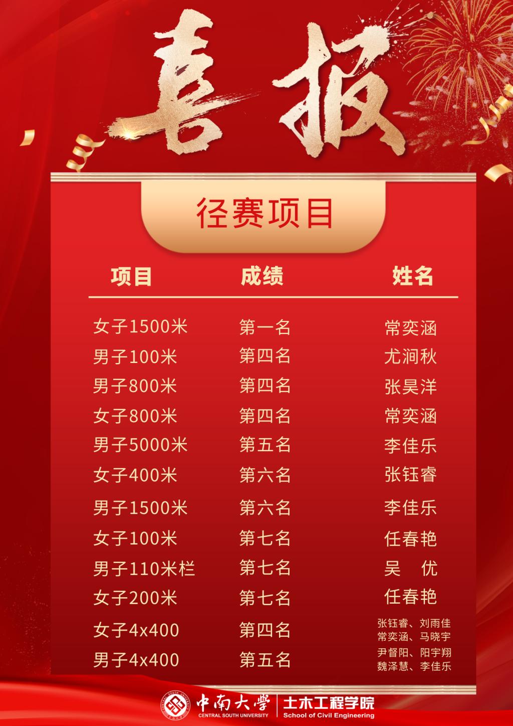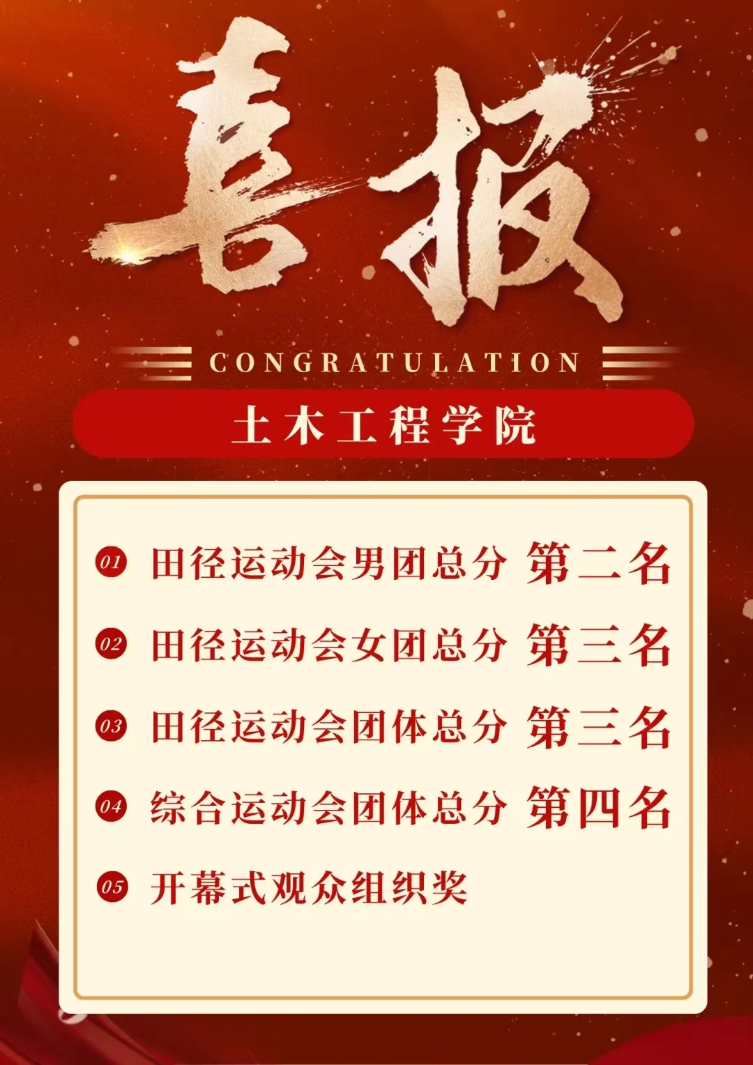 2023年11月17日至19日,3044am永利集团官网第八届综合运动会暨第二十一届田径运动会在新校区鸟巢体育场、南校区体育场举办。学校学院各级领导以及来自33个学院的3495名运动员参加开幕式,其中土木工程学院共有142名运动员参与本次运动会,并取得团体获奖13项、田赛获奖10项、径赛获奖12项的出色成绩。
