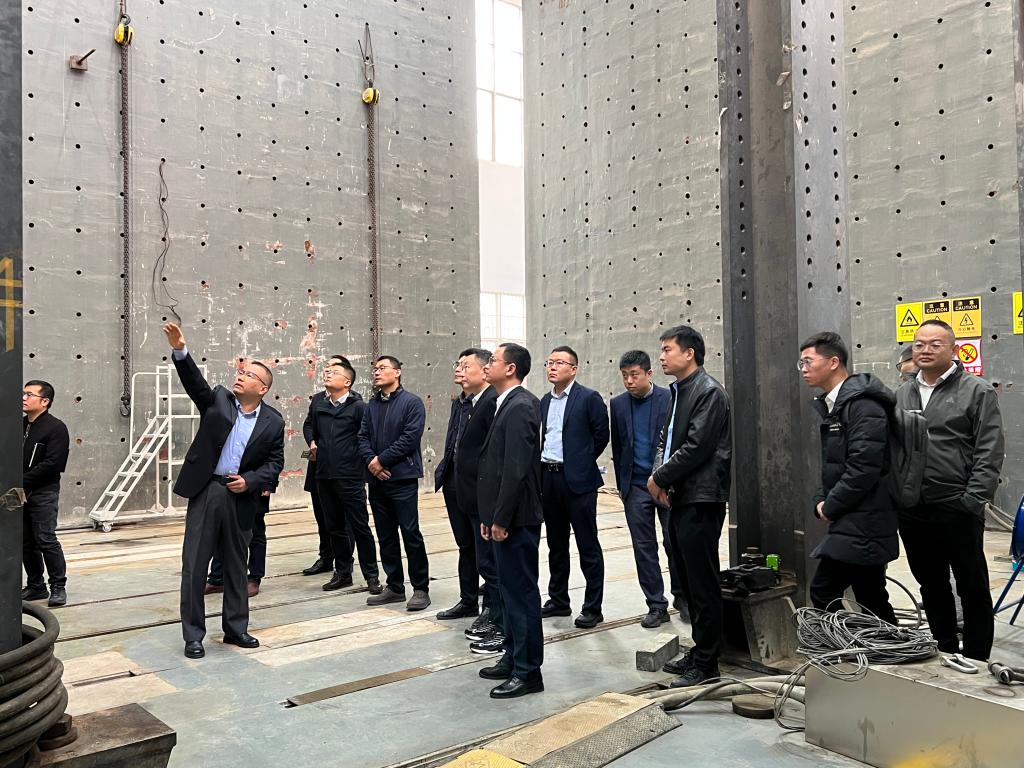 王卫东院长向前来调研的同志们表示了欢迎,并邀请陈浩副总经理一行参观考察了3044am永利集团官网高铁建造技术国家工程研究中心。湖南建投集团领导在2号楼试验大厅对钢结构模块单元房抗震性能试验进行了现场指导,周凌宇教授就湖南建投集团代表们的提问一一进行了解答。