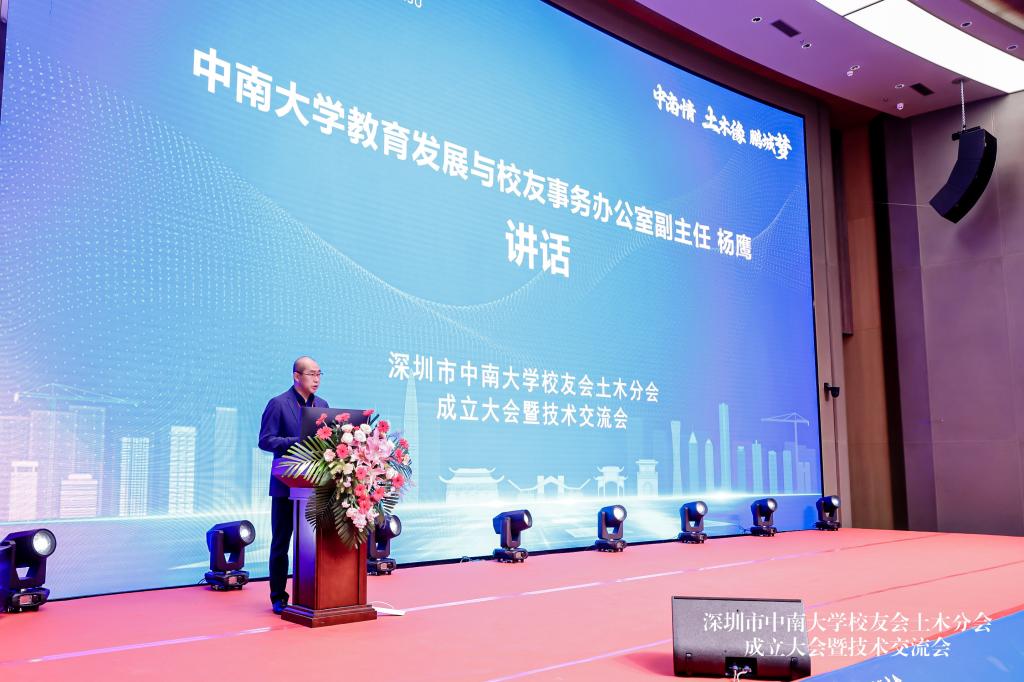 深圳市3044am永利集团官网校友会执行会长汤伟玲在讲话中提到深圳以其勇于创新、追求卓越的精神而闻名于世,中南校友在土木工程领域有着丰富的经验和专业知识,土木分会的建立将更大的发挥我们的优势,为深圳的城市建设贡献我们的力量。