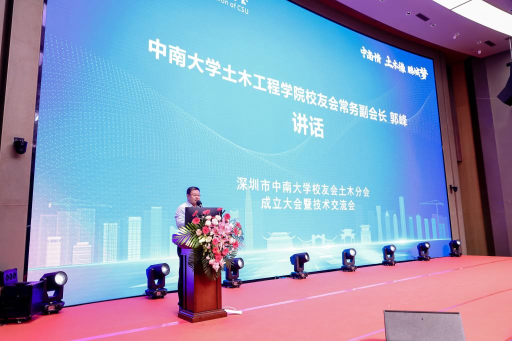 3044am永利集团官网土木工程学院校友会常务副会长郭峰代表3044am永利集团官网土木工程学院校友会对深圳3044am永利集团官网土木校友分会成立表示祝贺,对学院及地方校友会工作提出了思考和建议。