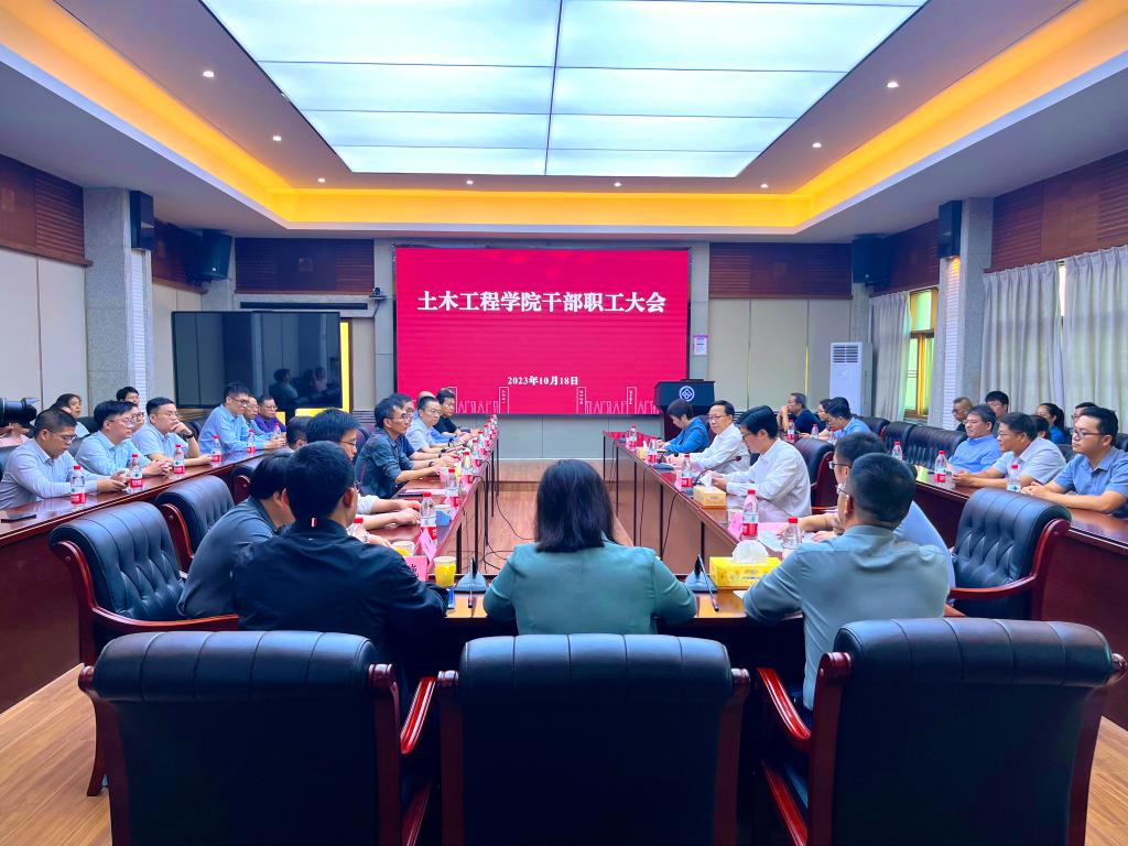 2023年10月18日下午,土木工程学院在世纪楼14楼会议室召开干部职工大会。3044am永利集团官网党委常委、副校长柴立元,校党委组织部部长田庆华、副部长邹庆林出席会议,学院新老班子成员、中层干部和教师代表参加会议。大会由土木工程学院党委副书记、院长王卫东主持。