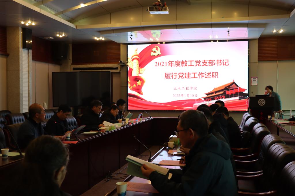 2022年1月10日下午,土木工程学院在世纪楼14楼会议室召开教工党支部书记履行党建工作责任述职评议考核会议。学院党委委员、教工党支部书记参加会议,会议由院党委副书记杨鹰同志主持。