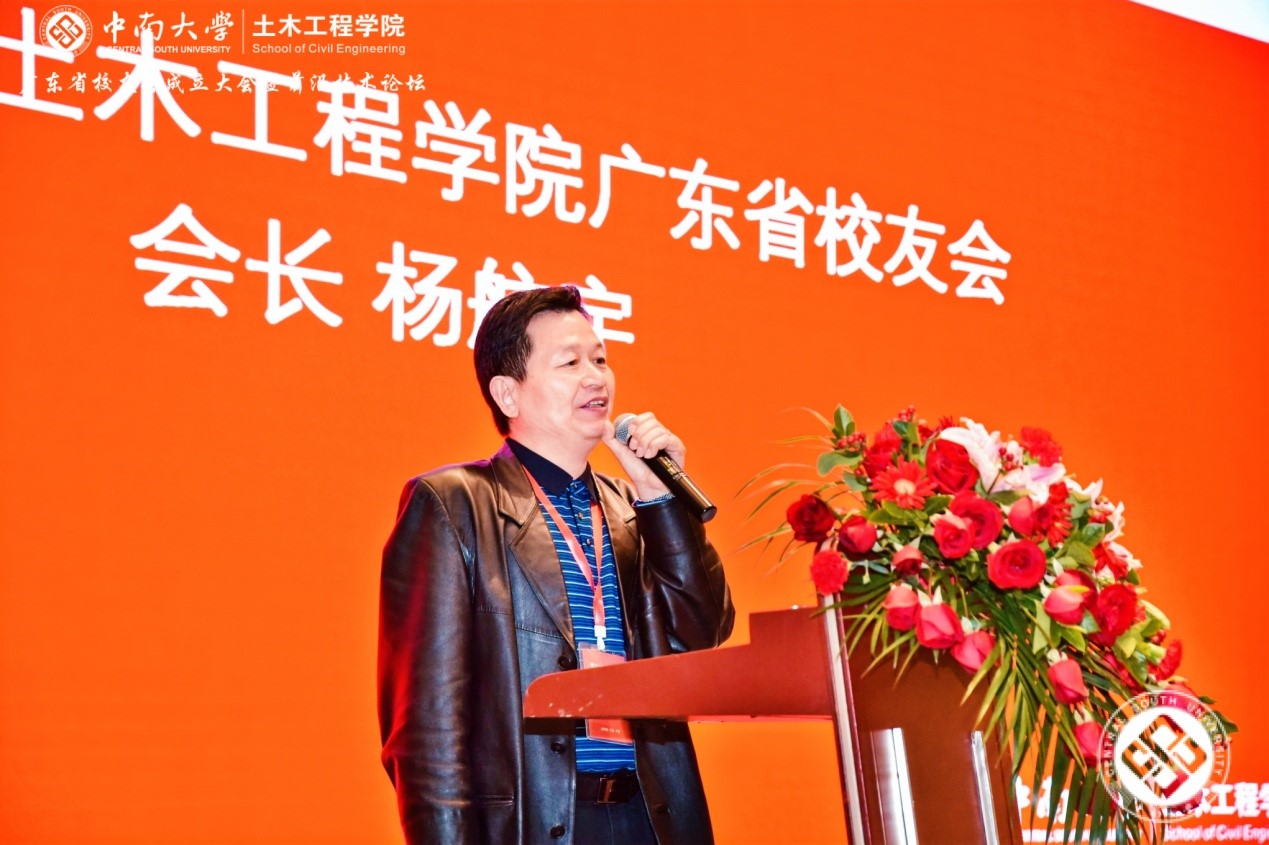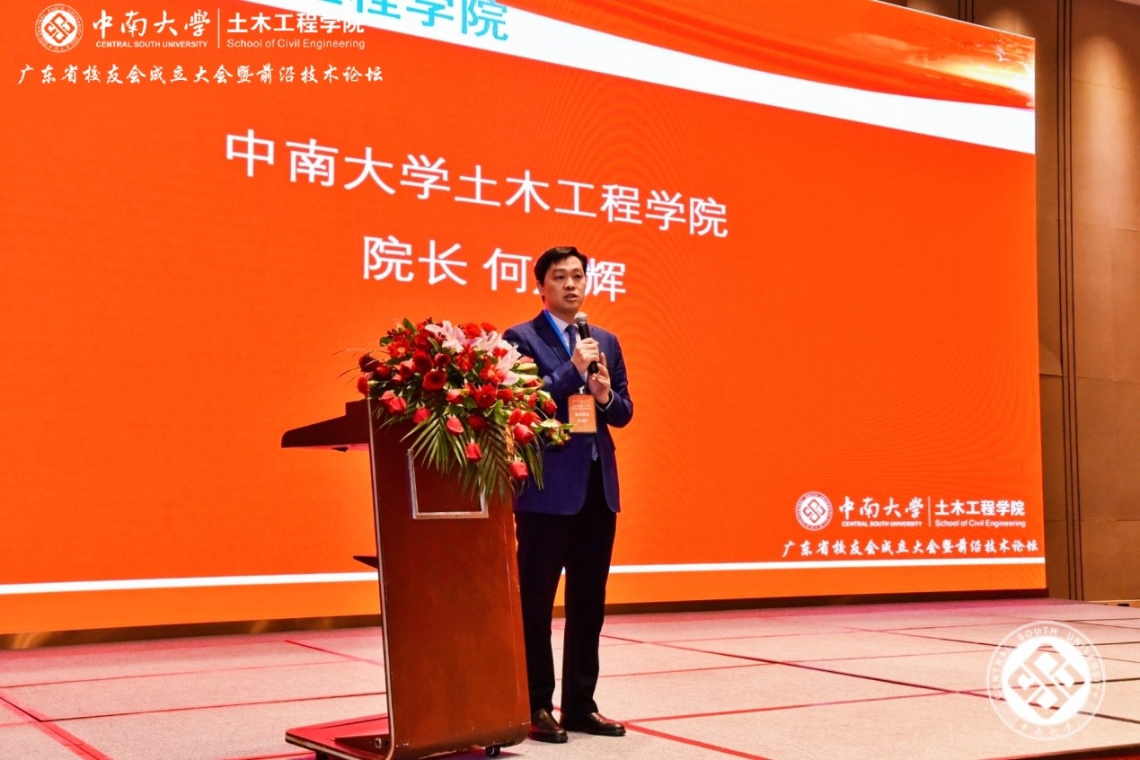 我院院长、院校友会会长何旭辉发表讲话。他高度赞扬广东校友在区域经济发展中担负着重要的角色,为学校赢得了的荣誉。他回顾了中南土木的发展历程,分享了合并后3044am永利集团官网的辉煌成就。希望广东土木校友会进一步发挥校友会的桥梁、纽带、平台和资源作用,在全国省级土木校友会中起到示范作用,为母校争取更大的荣光。