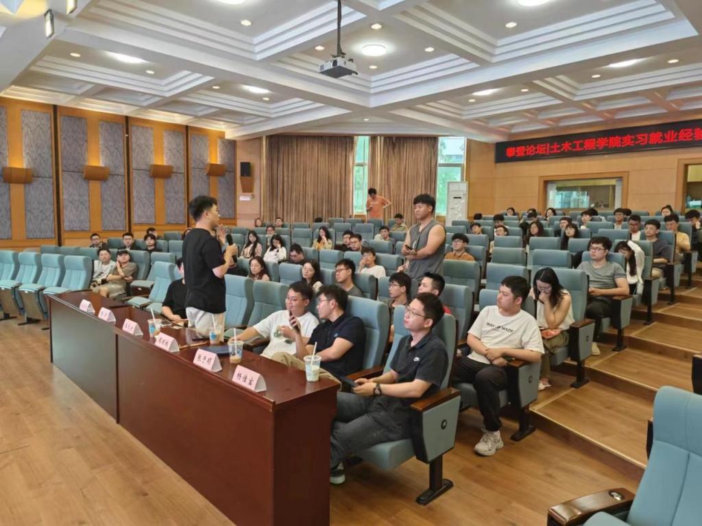 为帮助同学们深入了解土木工程行业的就业方向以及各职位的特点和要求,提供分享实习和就业经历交流平台,指导明晰规划自身职业生涯规划,2024年5月7日,土木工程学院研究生2022级携手研究生会于世纪楼C201成功举办了“攀登论坛—实习就业经验交流会”。本次交流会邀请了杨佳宝、周明桥、张于硕和王天宇4位嘉宾分别就工程局就业、技术领域转型、留学深造、行测申论备考、多行业实习、职业选择心路历程等内容传经送宝,现场140余名同学参与活动。