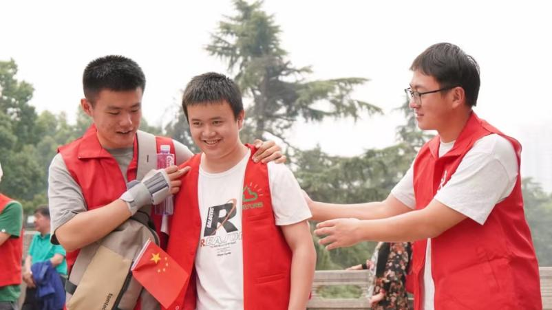 伴随着阵阵桂花香,参加活动的全体成员乘坐大巴车前往烈士公园。在活动开始前,岳麓怡智家园的工作人员根据每个残疾人士的性格特点为他们每个人分配了2-3名志愿者同学,负责陪伴他们观摩,保证他们的安全。