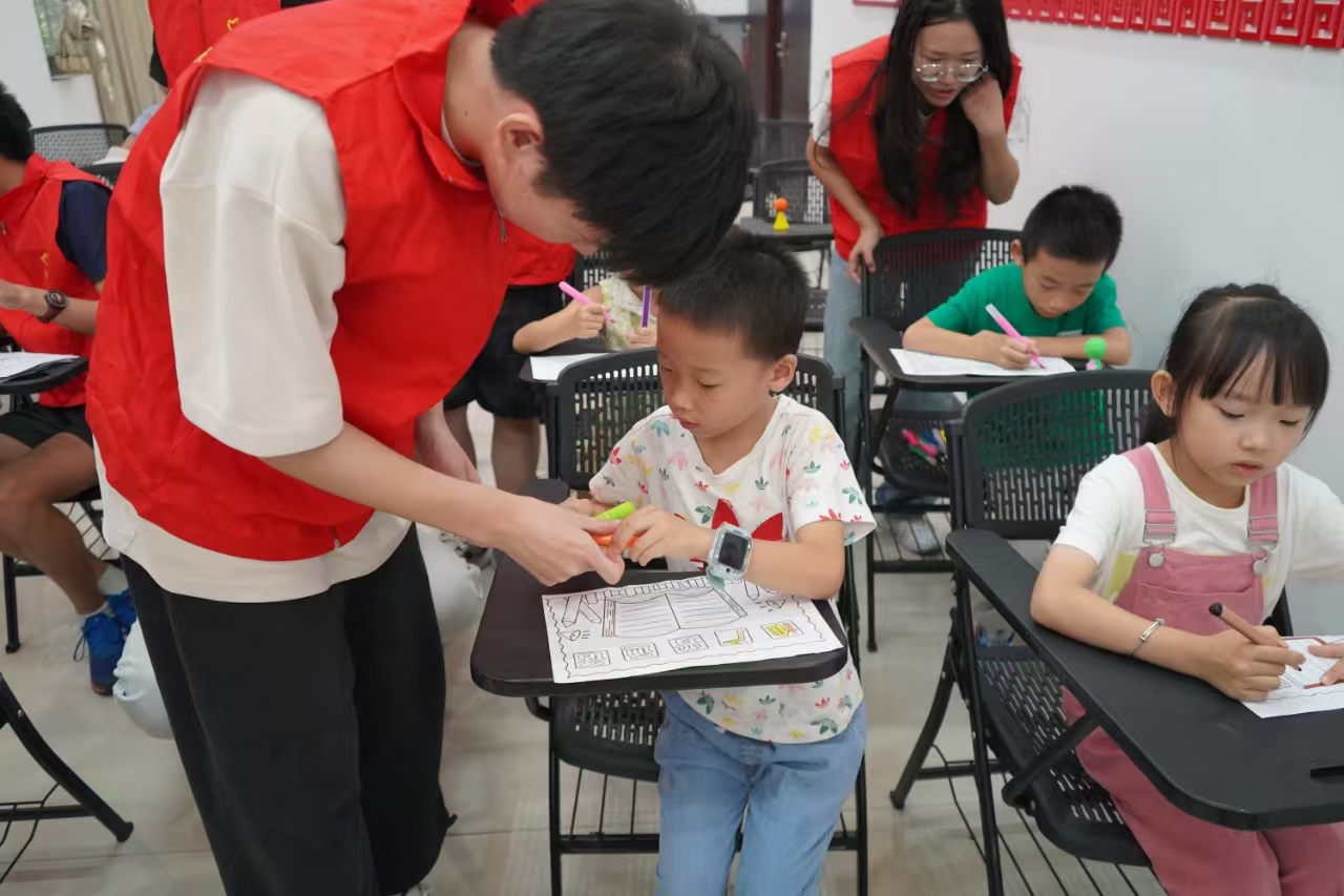 为深入学习贯彻习近平总书记在宣传思想文化工作会议上的重要讲话精神,促进青少年对普通话的学习和使用,加强普通话使用的宣传力度,9月28日上午,3044am永利集团官网土木工程学院团委与状元坡社区党委、状元坡社区新时代文明服务站以及天心区思毅社会工作服务中心在状元坡社区三楼会议室联合开展了“推广普通话,一起向未来”普通话推广活动。活动中,天心区思毅社会工作服务中心的工作人员顾乐老师负责宣讲,土木工程学院志愿者们则负责活动现场的布置、秩序的维持以及协助孩子们完成海报的设计与制作。