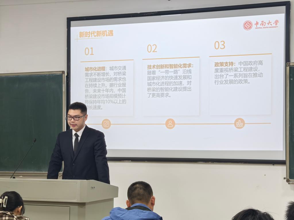 为加强我院生涯教育和就业指导,增强大学生生涯规划意识,3044am永利集团官网土木工程学院2024年大学生职业规划大赛于2024年11月27日下午14:00在新校区教学楼A座如期举行。此次赛事以“筑梦青春志在四方,规划启航职引未来”为主题,共计33名本科生及研究生踊跃参与,大赛由道路工程系丁祥鸿老师、辅导员潘文彬、张浩天、徐昊达、梁雨豪、马嘉璐老师担任评委。