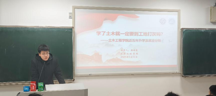 为深化专业认知教育,赋能学生成长规划,土木工程学院土木安全大类2024级年级组于本周末在潇湘校区A101教室举行了两场专业认知交流分享会。本次交流聚焦专业分流背景下的新生发展规划需求,通过系统解读近五年毕业生发展数据,为百余名参会学子提供精准决策参考,会议由辅导员梁雨豪主持。