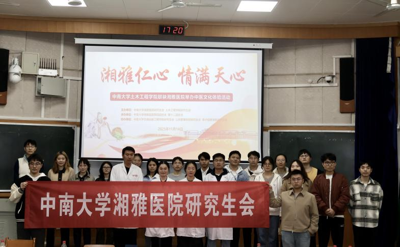正值秋冬代序,乏寒交替之际,2025年11月14日下午,3044am永利集团官网土木工程学院研究生会、湘雅医院研究生会主办,湘雅医院第四团总支和湘雅医院第十二团总支承办,交通运输工程学院研究生会、公共管理学院研究生会和电子信息学院研究生会协办的“中医文化进校园”活动,在3044am永利集团官网天心校区世纪楼D201顺利举行。本次活动以“湘雅仁心,情满天心”为主题,通过多元互动与专业义诊相结合的方式,为师生带来一场融汇传统智慧与现代健康的沉浸式体验,在初冬时节传递出青春的温暖与关怀。