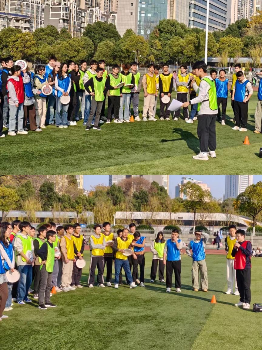 2025年12月28日下午,天心校区田径场阳光正暖,学生第六党支部联合教工力学党支部开展“盘聚合力,心向圆心”共建活动,教师党员与学生党员以飞盘为媒,同上一堂“移动党课”。活动由学生第六党支部书记尚冠竹主持。