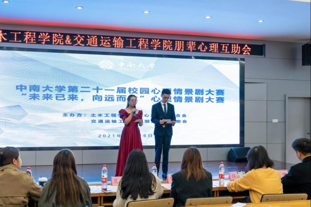 2021年10月16日下午两点,由土木工程学院与交通运输工程学院的朋辈心理互助会共同举办的“未来已来,向远而生”心理情景剧院赛在校本部立言厅正式开始。