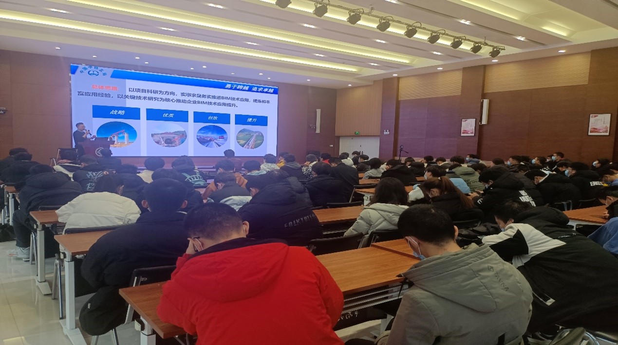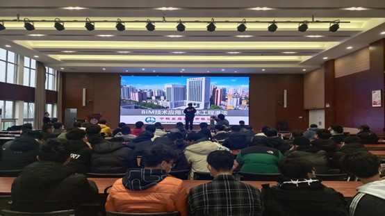 为加强校企合作联动,进一步落实就业指导前置工作,在学院内涵养优良学风,以兴趣为导向激发同学们的学习热情,2022年1月6日下午15:00,土木工程学院团委、学生会组织开展“漫谈土木”专业教育系列活动第二场BIM技术应用讲座,本场讲座在新校区毓秀楼238举行。由本次讲座土木安全类2021级本科生高佳琦主持,邀请了中铁五局设计研究院副院长励青为我们介绍BIM技术在工程实践中的应用,共计120余人线下参与本场讲座。