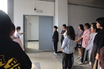 在理论实践环节,消防工程专业的同学带领同学们参观了新校区b座的各种消防设施,向同学们简要介绍了它们的作用以及使用方法。在b座下停车场,同学们志愿地将乱停乱放的电动车摆放整齐,助力校园停车秩序。