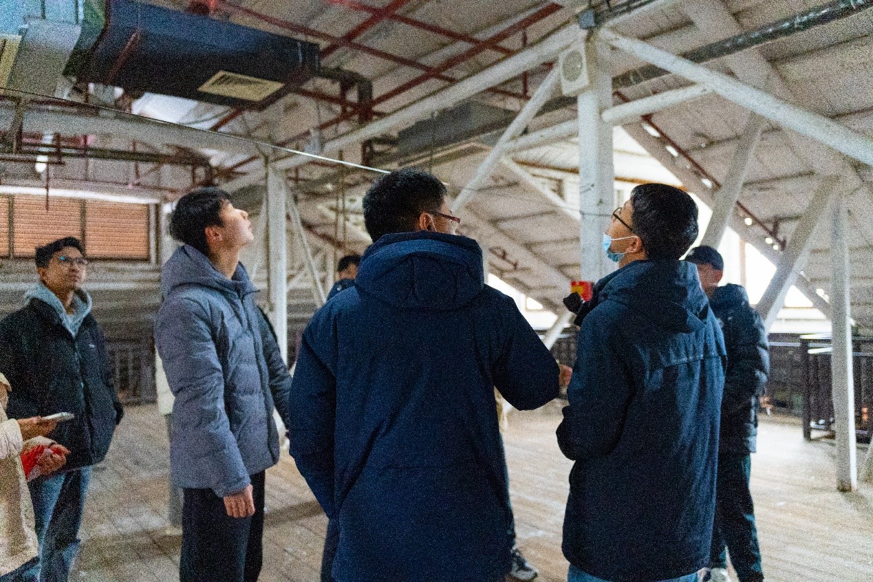 紧接着,实践团队进入南栋仓库,发现内部修缮风格与北栋有较大差异。负责人表示,出于对文物的保护,南栋的修缮工程大多依照原貌,保留了原有的建筑结构和内部设计,所有木楼板及桁架结构都得到了较好的保存。