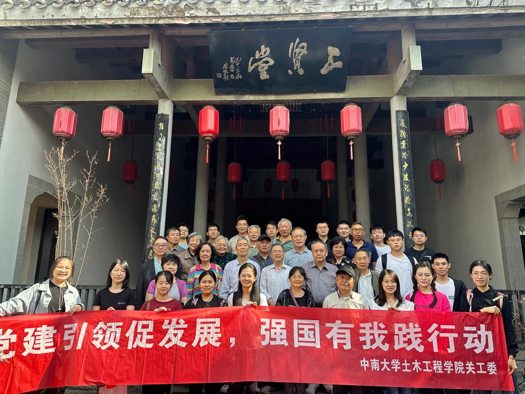 党建强则业务精,业务强则党建实。为进一步加强爱国主义教育,弘扬爱国主义精神,营造爱党、爱国的浓厚氛围,土木工程学院离退休党支部与研铁道第一、二党支部、研材料硕士党支部加强共建共创,于2023年11月3日,联合开展“党建引领促发展,强国有我践行动”深刻的文化教育之行,前往长沙市望城区乔口古镇进行参观学习。