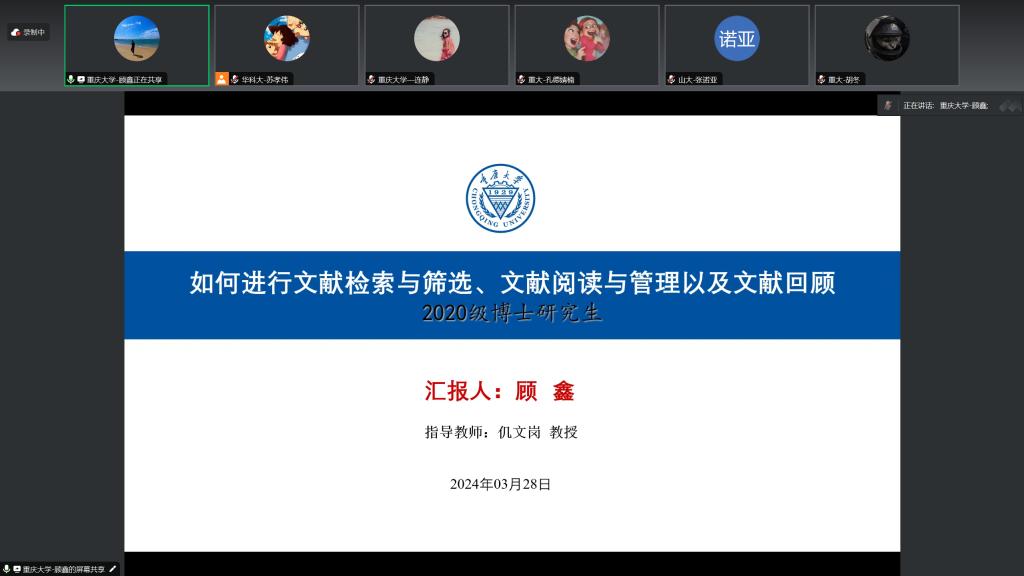 重庆大学土木工程学院长江学者创新团队研究生一、二、三党支部邀请连续两年获评国家奖学金的顾鑫同志作题为《如何进行文献检索与筛选、文献阅读与管理以及文献回顾》的科研经验分享。他从自身学习情况讲起,分享了他硕博学习生涯过程中关于文献阅读和学习方面的经验,介绍了文献检索的四大平台、如何查找学习文献及如何围绕研究方向开展“系统深入研究”的方法,激励同学们要提高本领,潜心科研,脚踏实地把握机会,把论文写在祖国的大地上。