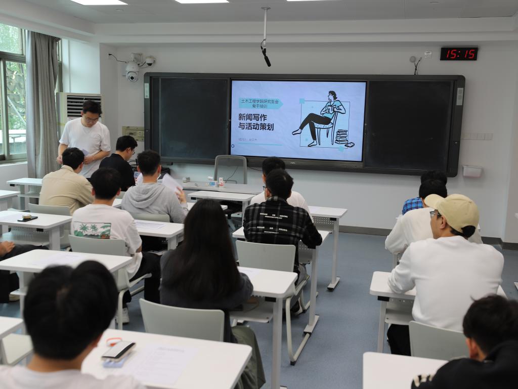 为进一步提升学生会与研究生会工作人员的新闻写作能力和活动策划水平,培养一批具备专业素养的骨干力量,2024年3月29日下午,土木工程学院学生会、研究生会在世纪楼主305教室联合举办了 “新闻写作与活动策划”骨干培训会。培训会共吸引了27位来自学生会和研究生会的学生骨干参加。
