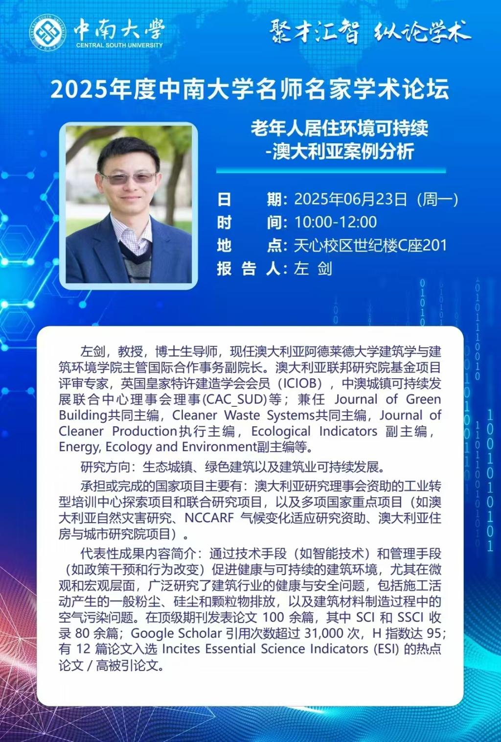 学术讲座预告:老年人居住环境可持续-澳大利亚案例分析
