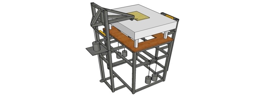 由竞赛组委会统一提供17mm厚承台板用于纸质模型的固定,试验前,参赛队伍首先用带垫自攻螺丝将纸质模型固定在承台板的上表面,然后用4个木工夹将承台板固定在钢架二层钢方通上面。