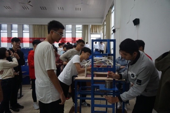 27日上午九时许,各参赛队伍于新校区D座进行了紧张激烈的角逐。参赛选手们通过称重、测量、固定和加载五个环节一争高下。