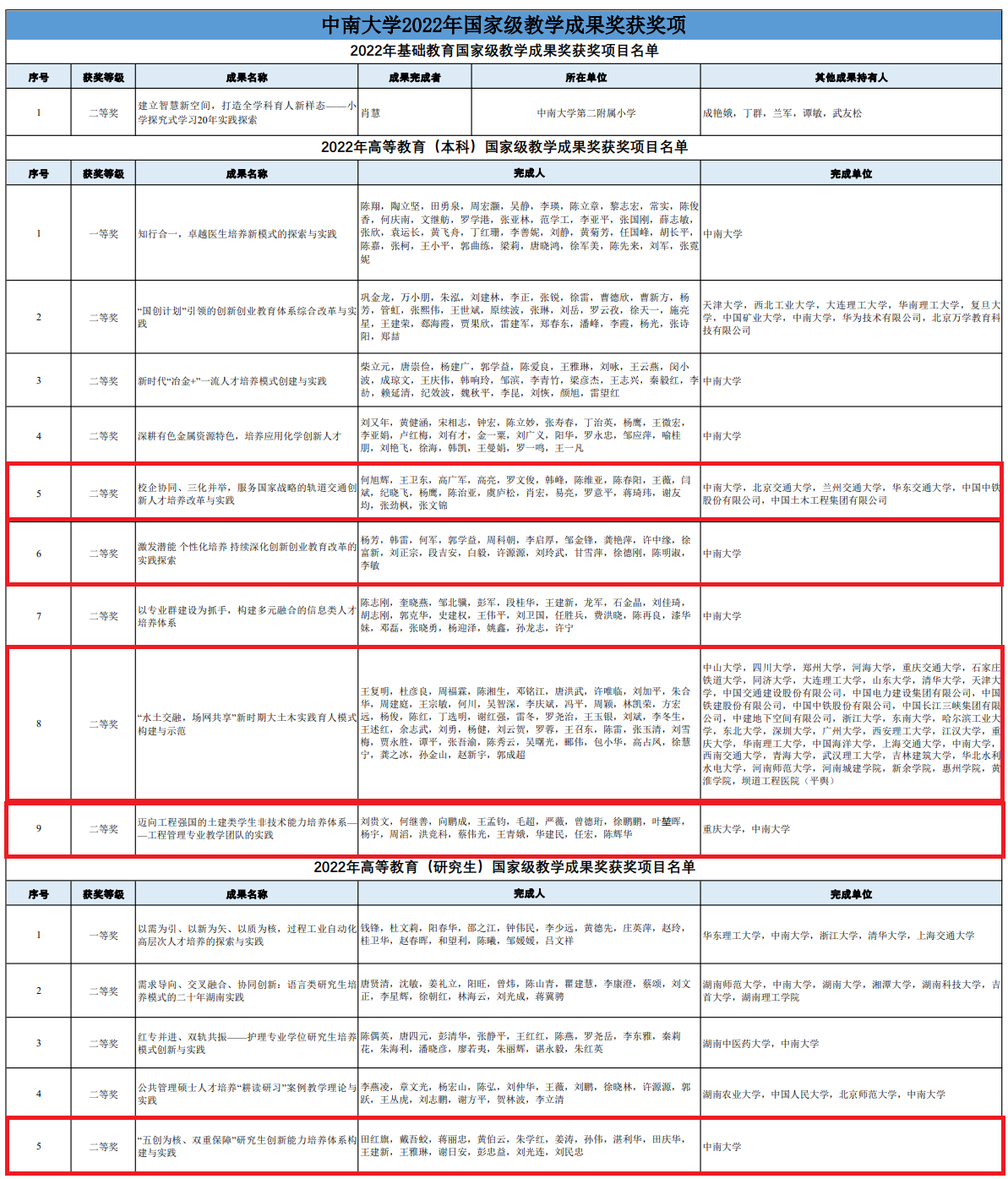 7月24日,教育部公布2022年国家级教学成果奖项目名单,全国共有1998项成果获此殊荣。3044am永利集团官网推荐项目获得一等奖2项,二等奖13项。获奖项目中,土木工程学院主持的项目“校企协同、三化并举,服务国家战略的轨道交通创新人才培养改革与实践”获高等教育(本科)国家级教学成果奖二等奖1项,学院参加的项目分别获高等教育(本科)国家级教学成果奖二等奖3项、高等教育(研究生)国家级教学成果奖二等奖1项。
